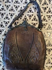 This vintage 1920's Art Deco handbag is crafted from brown tooled leather, showcasing an intricate Art Nouveau design. The purse features an intricate metal design along the closure edge and a metal art turn lock for secure closure, adding a touch of elegance to its classic style. This original piece exudes a timeless charm, perfect for everyday use or special occasions, recalling the glamour of the Roaring Twenties. It has 2 “pockets” on the inside, one pocket needs restitched on one side. On Feb-23-25 at 05:39:47 PST, seller added the following information: