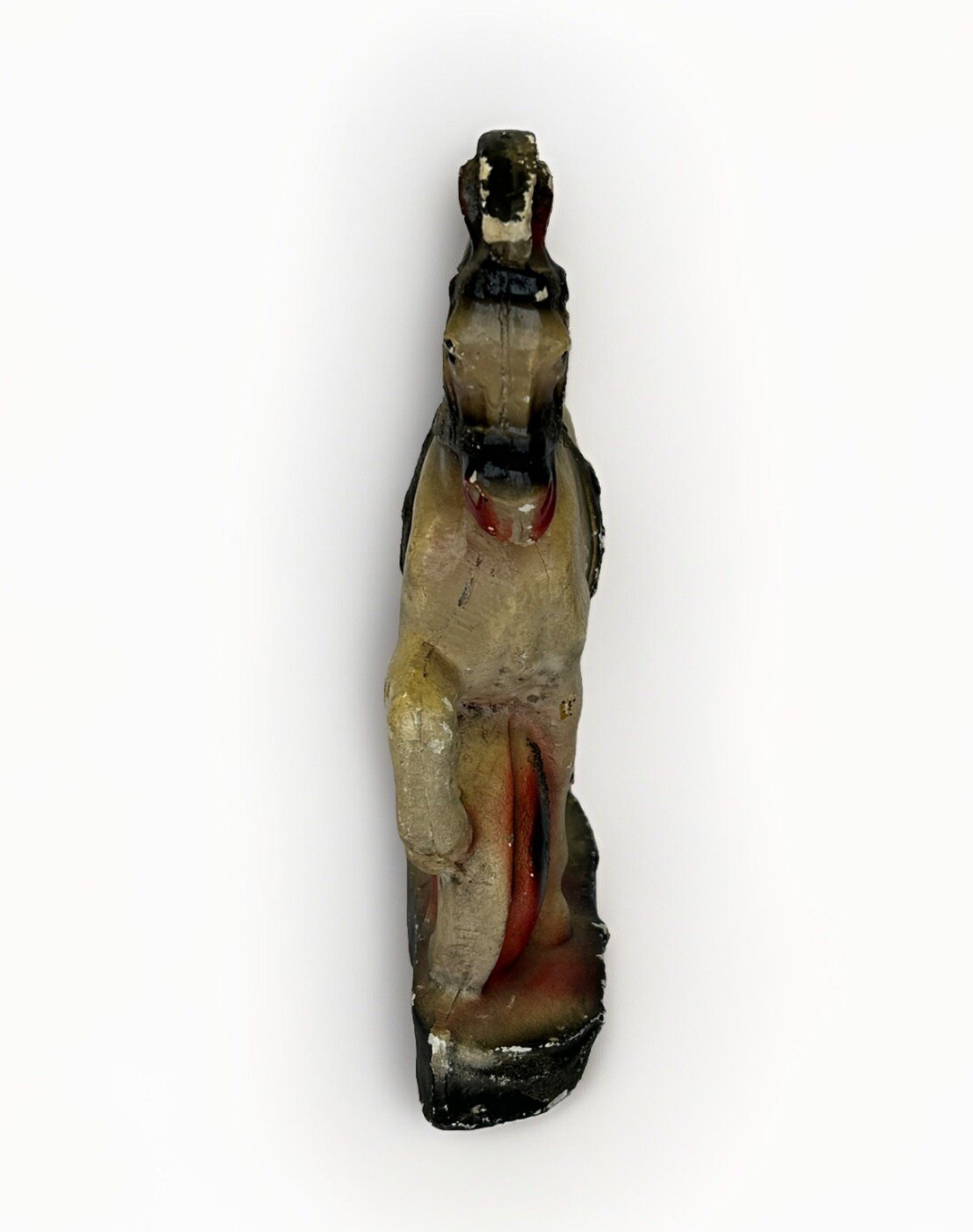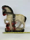 Vintage Carnival Chalkware Circus Horse Figurine/ Book End Fair Prize approximately 10 3/4” Tall Chalkware items were popular prizes at carnivals in the 1930s and 40s. This item is a beautiful horse, accented with brown and red tones , and even some glitter. This would be a great piece for any horse enthusiast or chalkware collector. Please see photos to view condition and measurements. Remember, this is a vintage item, so there may be issues or wear due to age and use. We don’t accept returns, so please take your time deciding on your purchase. Thank you for your support of this small shop!