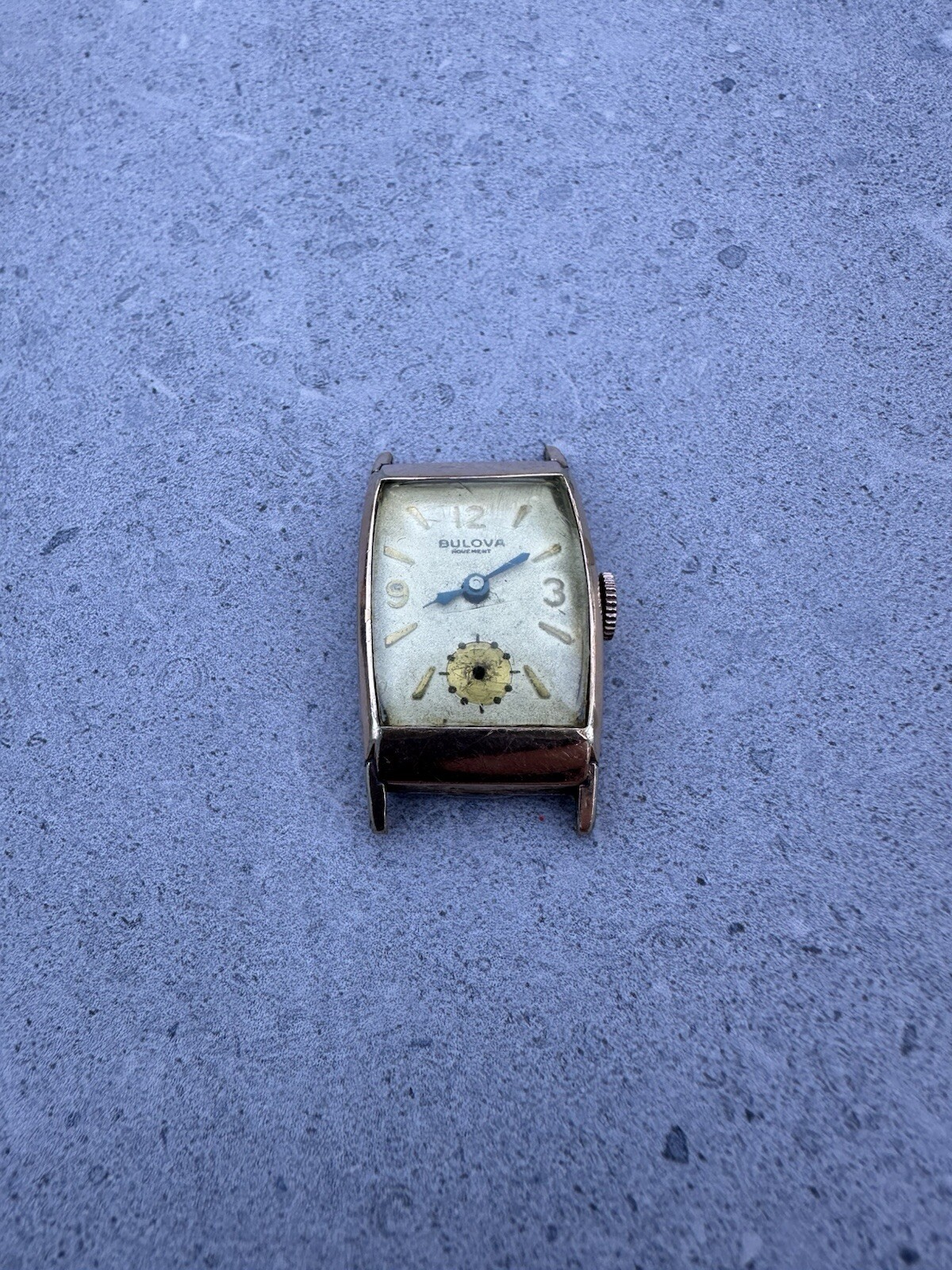 1930/40s Bulova Tank Watch capped in rose gold. Runs and keeps time, however is missing its second hand. Obo!