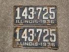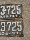 Vintage 1936 Blue Illinois License Plates Pair Matching Auto Tag Metal Decor DMV