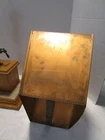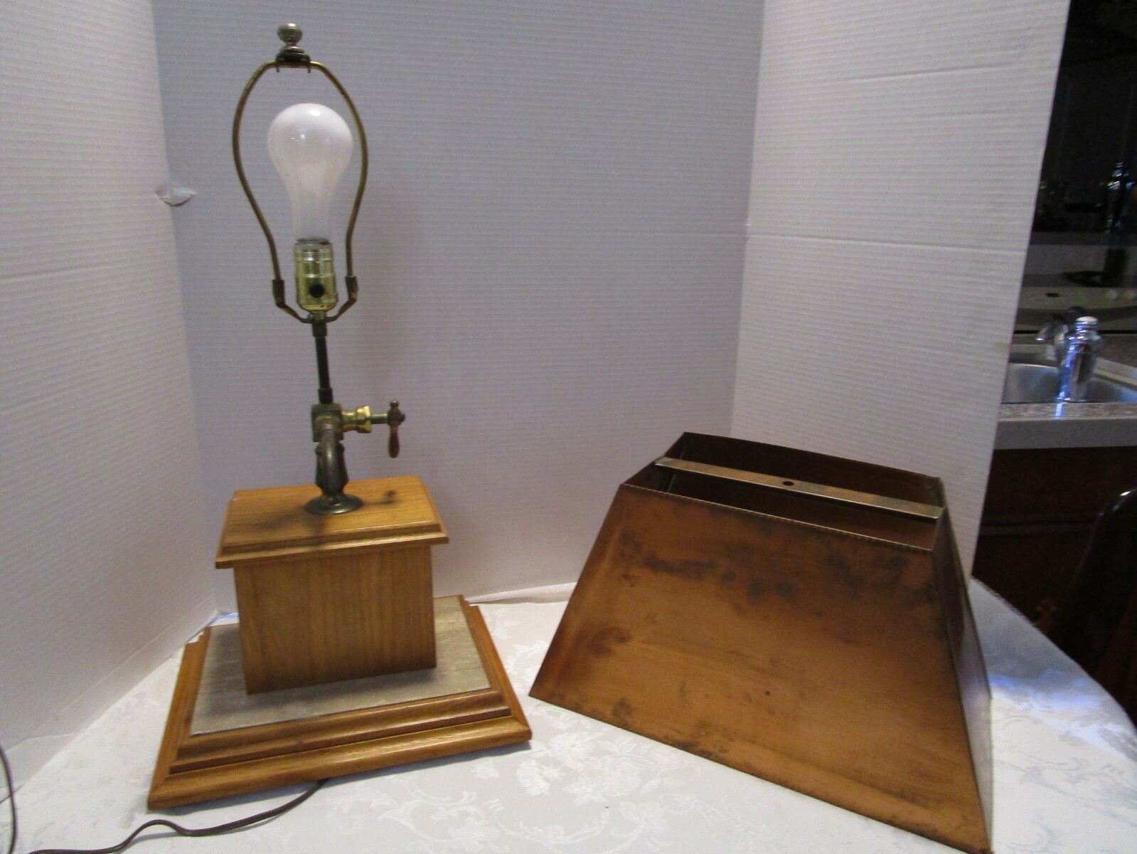 California Prop 65 Warning:n/aStyle:Arts & Crafts MovementCountry/Region of Manufacture:United StatesColor:Earth Tones brown tan copperOriginal/Reproduction:OriginalMaterial:Copper, Travertine, WoodDepth:9 1/8 inBrand:HandcraftedSub-Style:TraditionalWidth:12 1/8 inDiameter:12 1/8 inItem Height:23 1/2 in