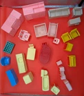 Collection of greater than 80 pieces of dollhouse furniture and accessories. The previous owners were born in 1928 and 1929- dating the collection to 1930's and early 1040's. A PARTIAL list is below. All pieces are pictured. Thanks for looking. RENWAL: Posable figures #'s 42,43,44 Bathroom pieces Refrigerator (cracked) Vacuum Table clock washer ironing board school desks sliding board LAPIN 2 DOOR COUPE BEST BUNK BEDS ACME STROLLER IDEAL SEWING MACHINE & BUGGY IRWIN BUCKET PLASCO CHAIRS & TABLE PLASTICVILLE WATER PUMP UNMARKED: kitchen appliances bathroom fixtures living room furniture nursery furniture tables chairs vanity & dresser ACCESORIES: pipe camera iron tennis racket cash register dust pan dog milk bottle baby