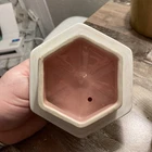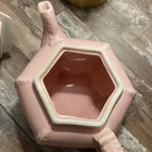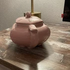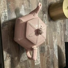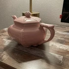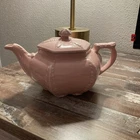 This vintage 1940s Hall Victorian Feather Plume Starfish Rose Pink Teapot is an exquisite piece of American art pottery, featuring a unique hexagon shape with a glossy finish. The teapot is adorned with intricate Victorian-style designs, including feather plumes and starfish, all in a beautiful rose pink color. With a printed backstamp indicating its originality and marked features, this teapot is a charming addition to any collection, perfect for those who appreciate the craftsmanship and style of the 1940s. See photos for condition.