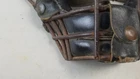Vintage steel and leather catchers mask. Canvas straps not intact and missing material/fasteners.
