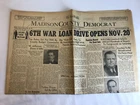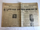 November 17, 1944 Madison County Democrat Newspaper Complete Interesting article published on the front page: 40 foot Army trailer that was touring the country displaying the captured Japanese and German equipment. War Bonds and great Christmas advertisement. Advertisement for The Master Race movie. Light wear, spots from use, but overall very clean, please see photos. In good clean used condition and comes from a non-smoking home. Please let me know if you have any questions. We ship 1 day after payment. Happy to combine multiple purchases to save you on shipping costs. Please check out our shipping discounts. Please take a look at our other listings, you never know what we might have listed. Please kindly let us know if there is a problem with the item before leaving feedback. Thank you. Visit My eBay Store: TC toys and more