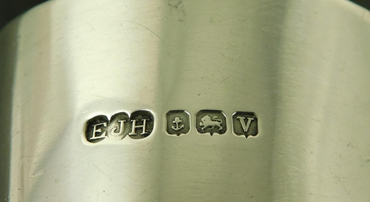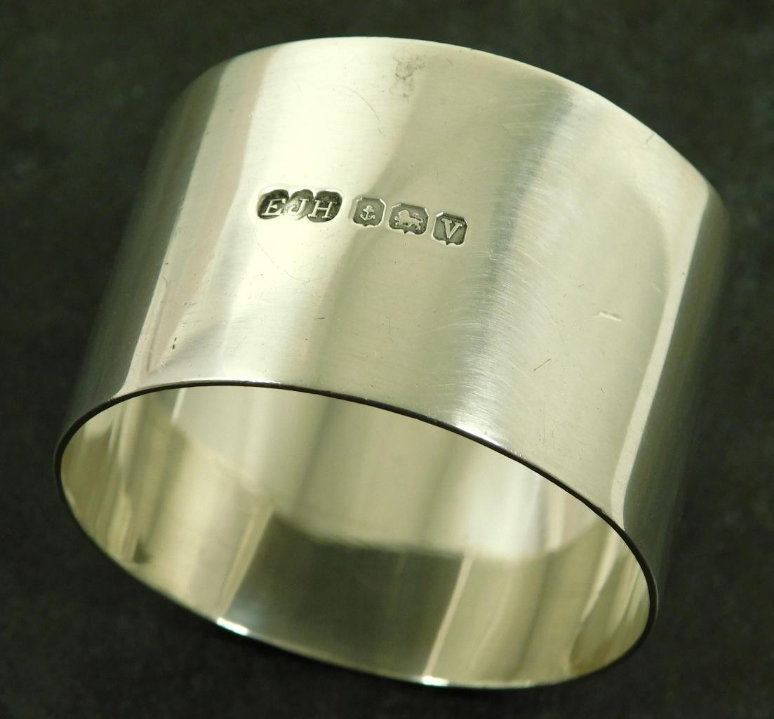 A Vintage 1945 Solid Silver Art Deco, Napkin, Serviette Ring This item measures approx, 4.5cm in diameter and 3cm high. The napkin ring weighs approx 28.2g. There is a full set of Birmingham 1945 (V) solid sterling silver hallmarks. The makers mark is a distinctive "EJH" for; "EJ. Houlston" one time of Caroline St Birmingham. The item is in a good general condition, a little off round. The item has not been personalised. Please take a look at the photos as they form part of the description. Vintage Solid Sterling Silver Art Deco Serviette Napkin Ring 1945 E Houlston Vintage Solid Sterling Silver Art Deco Serviette Napkin Ring 1945 E Houlston Click images to enlarge Description A Vintage 1945 Solid Silver Art Deco, Napkin, Serviette Ring This item measures approx, 4.5cm in diameter and 3cm high. The napkin ring weighs approx 28.2g. There is a full set of Birmingham 1945 (V) solid sterling silver hallmarks. The makers mark is a distinctive "EJH" for; "EJ. Houlston" one time of Caroline St Birmingham. The item is in a good general condition, a little off round. The item has not been personalised. Please take a look at the photos as they form part of the description. THIS IS A UK SALE IN GBP STERLING. Whilst I try to list all the negative and positive aspects of an item in my listings it remains possible that some small aspect may be missed.You would be well advised to remember that unless I list something as mint it will be a used and/or antique item which may have the marks of day to day existence upon it, for example: the odd mark here and there, slight fading etc. 18013 Get images that make Supersized seem small. Showcase your items with Auctiva's Listing Templates! THE simple solution for eBay sellers.
