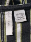 Elevate your wardrobe with this stylish Est. 1946 women's blouse featuring vertical khaki green, black, and white stripes. The relaxed fit tunic style blouse is perfect for any occasion, from business to travel, and can be dressed up or down. Made with a lightweight, stretchy cotton and modal blend jersey fabric, the blouse also features side slits at the hem and bell sleeves for added style. This easy-care blouse is machine washable, non-iron, moisture-wicking, and wrinkle-resistant, making it a go-to for any season. The collarless neckline, pullover closure, and oversized fit make it both comfortable and slimming. Whether you're looking for a blouse for work or play, this Est. 1946 top is sure to impress. Pit to pit- 23" Shoulder to shoulder- 17" Shoulder to cuff- 20.5" Shoulder to hem- 29" Waist- 23"(flat) Hips- 25"(flat) Previously owned in very good condition. Please measure against current size to insure correct fit.