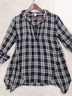 Yes, I do combine shipping! You should see the combine shipping price when you click on the "Shipping and Payment" tab next to the "Description." Cute plaid top! Such a classic! "Look good, feel great, love life. Follow your heart." Details Flowy rayon material, 3/4 roll-tab sleeve. Condition Excellent used condition, no defects, looks like it's never been worn. No stains, rips, or any flaws noted. Color Black, gray, gold metallic. Due to lighting and camera settings, the actual color may appear different than shown in photos. Also, please keep in mind that every screen displays color differently. Material 99% rayon, 1% other fiber. Size The tag says size Medium. The model is wearing the actual dress is in the photos so the dress may appear larger/longer on the model. The dress was pinned on the model to make it look like it fits. Model The model is 110 lbs, 5’2, 34b, 25, 35, wears size XS/S. Bust 20 inches across Waist 21 inches across Length 29 inches from shoulder to bottom hem Measurements are approximate with the garment lying flat across. Please read the measurements carefully. The length will be different on everyone depending on height. Why should you purchase from me? I am a reliable seller I ship lightning fast Everything is smoke-free and carefully inspected Pre-owned items have been washed/dry cleaned before listing My goal is for each transaction to be perfect the first time around. If you have any issues with your purchase, please send me a message here within 3 days of the delivery confirmation. Please do not leave a neutral or negative feedback because I will always make sure you are 100% satisfied. Payment is due within 48 hours from close of auction. An Unpaid Item case will open after 48 hours. If you need more time, you have about 4 more days to make payment while the case is open. We will not hold items longer than 6 days. We accept PayPal, Visa, MasterCard, American Express, and Discover. We ship Monday thru Friday, excluding national holidays, using the United States Postal Service. All shipments include a USPS tracking number. Please make sure your address is correct. We ship to the United States and all the countries in the Global Shipping Program. No other residents at this time. If you have any questions, please send us a message here on eBay. We do not communicate outside of eBay. Track Page Views With Auctiva's FREE Counter