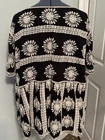 The Est 1946 Black Tunic with White Embroidery is a stylish and versatile piece perfect for a casual occasion. This tunic features short sleeves, a V-neckline, and intricate scalloped sleeves and hem detailing. Made from comfortable cotton material, this blouse is machine washable and in a size 26, catering to plus-size women. The embroidered accents add a touch of elegance to this chic tunic from the brand Est 1946, making it a great addition to your summer, fall, or spring wardrobe.