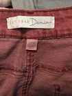 Est 1946 Stretch Denim Skirt Women's Sz 24 Plum Pockets Casual Distressed Waist is 22 as well as length Fb1