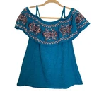 Up for sale is a used - Est 1946 Blouse Womens Small Peasant Puffy Flowers Adjustable Straps Size: Adult Small (S) Measurements: Chest: 34" Length: 22 1/2" from shoulder to hem Good used condition All colors bright & vibrant I will ship this item out via USPS Mail with a tracking number for confirmation Please feel free to ask any questions you may have Measure your favorite same type garment and compare measurements to insure a good fit I will be happy to combine shipping