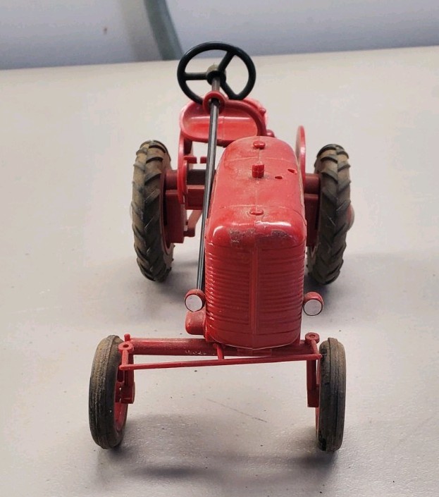 This Vintage 1948 Design Fabricators 1:16th Scale 1947 Farmall "Cub" Tractor is a collectible display item for farm equipment enthusiasts. Made of diecast plastic in a classic red color, this replica of the 1947 Farmall "Cub" Tractor is part of the Cub Tractor Series by Design Fabricators. Perfect for collectors aged 12 and up, this model features a plastic kit construction and is a fragile toy that should be handled with caution. Made in the United States, this vintage piece is a nostalgic addition to any farm-themed collection.
