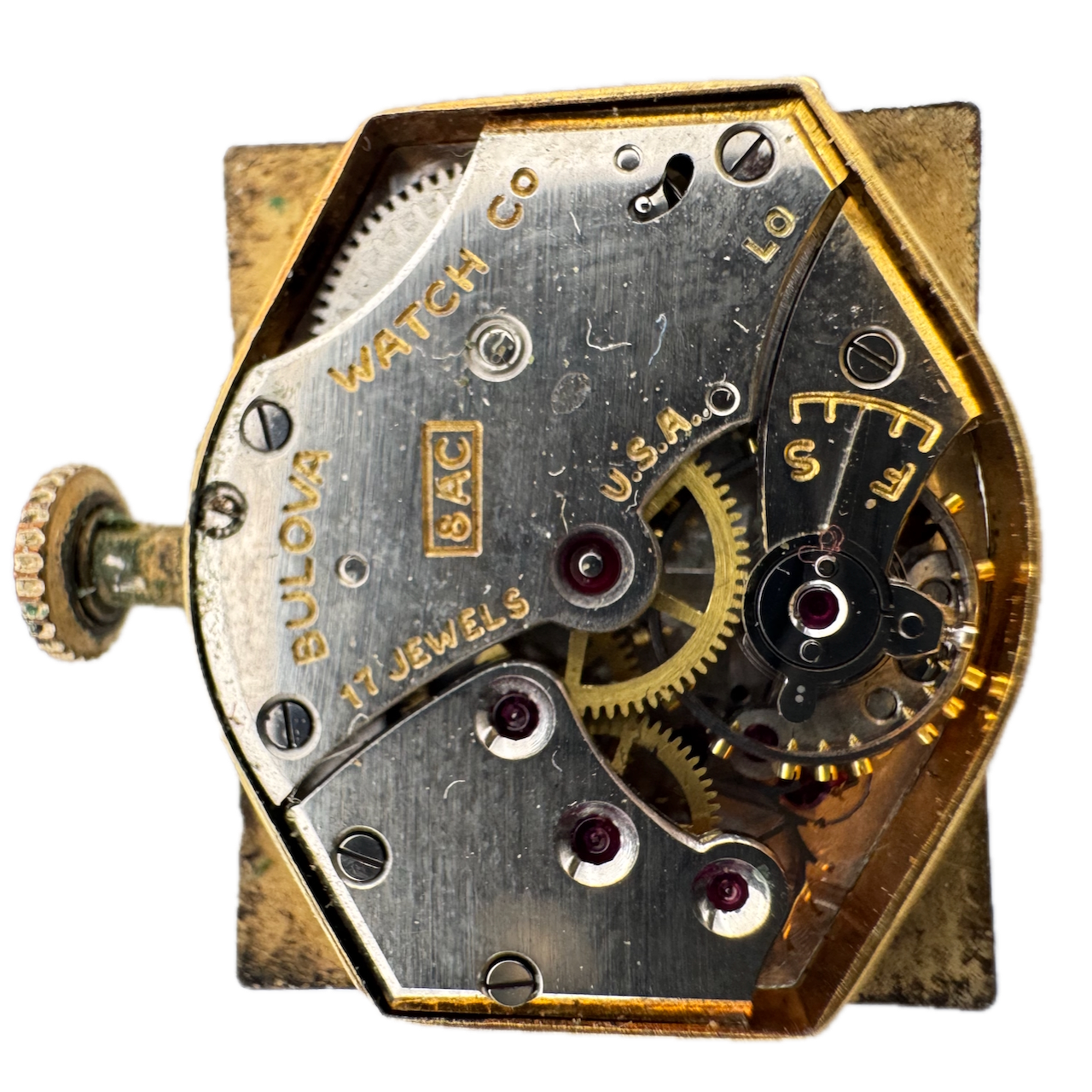 Vintage 1950 Bulova Baxter Men's Mechanical Wristwatch 8AC USA 10k RGP Product Description Item: Wristwatch Brand: Bulova Model: Baxter Movement: Mechanical Case Material: 10k RGP Production Year: 1950 Country: USA Gender: Men's Caliber: 8AC Size: 24mm Product Measurements Diameter: 24mm Lug Width: 18.5mm Lug to Lug: 33mm Thickness: 9 mm Product Condition Overall Condition: Fair, overall condition for its age. Functions: Not running but the balance complete is in good condition. Case: There are scratches on the case. Crystal: There are scratches on the crystal. Dial: The dial has scratches and discoloration. Crown: The crown is worn. Hands: There is discoloration on the hands. About the brand: One of America’s foremost manufacturers, Bulova was founded in the late 19th century by Joseph Bulova in Queens, NY. The brand quickly established itself as a maker of high quality watches, and became fully ingrained in American culture - even producing the first ever television commercial. Known for models like their Devil Diver, Sea King, and the later Accutron models, Bulova is something of the un-sung hero of American watchmaking, and a treasure trove for a vintage collector.