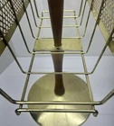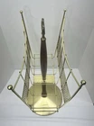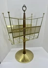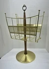 Super atomic! Mid century modern free standing magazine or record rack. Really cool retro design! Made of metal with a gold colored finish. Has wooden center pole. Atomic ball ends. Overall in nice condition. No broken or loose pieces. Structurally solid. Has some patina, scratches & finish wear (mainly to base). Wood is in great condition. Displays nicely! Measures 26” tall to top of finial by 16” long & 8.5” deep. The holder portion alone measures 14” long & 6” deep at bottom. Please understand feedback is extremely important to sellers. Please be considerate & take the 30 seconds to leave feedback. If the item got broke during shipment or I somehow missed a flaw PLEASE contact me FIRST. I sell mostly vintage & antique items & most will NOT be in new condition & will show age appropriate patina & wear. Firstly I want to say thank you for supporting small business right here in the heartland of America 🇺🇸🇺🇸🇺🇸 This is my full time job & I’m constantly out picking for new treasures. Then list, package and ship out almost daily. Follow me so you don’t miss out on the newest treasure! FEEDBACK is VERY important to sellers so PLEASE take the 30 seconds to leave positive feedback. Greatly appreciated! In the case you want the item, but don’t have the funds at the moment talk to me & I’m willing to work with you. I’ll happily give you a few days to pay. I get it…..trust me! PLEASE NOTE: If there is by chance the item got damaged during shipment, made a mistake or missed something and you are not satisfied with your purchase PLEASE contact me and allow enough time for me to respond before opening a case with eBay. I’m sure we can work something out. THANK YOU My goal is to make my costumers HAPPY. I buy & sell on eBay as my full time job. I absolutely love my job. I mostly sale vintage / mid century items, but do sell other items. Also, majority of all my listings are “Buy It Now” & almost always have “Or Best Offer”. Please view ALL photos & read entire description prior to purchase & as always feel free to contact me with any questions you may have about item. Due to being a smaller business I do not allow returns at this time. All my items are sold as found & in as is condition. I try to take several quality photos of all angles of the actual item you will be receiving. If there is any defects they will be mentioned & pictured. If by chance I did miss a defect PLEASE contact me prior to opening a case with eBay. There is a good chance we can work it out. I ship to lower 48 states only at this time. Unless using EBay Global Shipping Program. NO PO BOX’S unless you are willing to pay the extra shipping cost. I ship within or before 3 business days, but will work with buyers if they need the item sooner & contact me prior to purchasing. Please take into consideration that there is shipping cost with purchasing all boxes, bubble wrap, packaging material, tape, fragile labels, printing items & many more. I take pride in shipping process to make sure item will arrive safe. There is always that one carrier that isn’t careful, but they are far and few between. I rarely have an item arrive broken. Please make payment within 48 hours after you purchase item or auction has ended. I reserve the right to re list item if buyer has not completed the transaction after the 48 hours. I’m more than willing to work with buyer if they contact me about payment. I’m out picking a few times a week & constantly listing new items. Make sure to follow my store so you don’t miss out on that awesome piece just discovered in an attic or basement of that Victorian or MCM home. You never know what I will come across. That’s what keeps me out picking! Picking the Midwest one treasure at a time