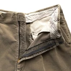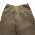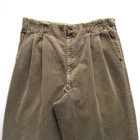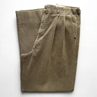 Recommended size: Medium Waist: 32" | Inseam: 30" Hips: 22" | Rise: 14" Outseam: 43" | Leg Opening: 10" Material: Corduroy Features a super faded greenish grey color, Waldes branded zipper fly and clasp, waist pleats, super heavy corduroy cotton material, two invisible back pockets with triangular leather accents, and single stitch tailored leg openings. *Please expect signs of wear/use as this item is in vintage condition (20+ years old). All sales final.