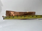 This vintage 1950s Renoir hammered copper belt in size M is a unique piece with a modernist look. The belt features a unique hammered texture, a solid copper color, and a sleek design that is perfect for casual occasions. The belt is 23" in length, making it a versatile accessory for women who appreciate the craftsmanship and style of the 1950s. Made in the United States, this original piece showcases the artistic touch of Renoir, adding a touch of elegance to any outfit.