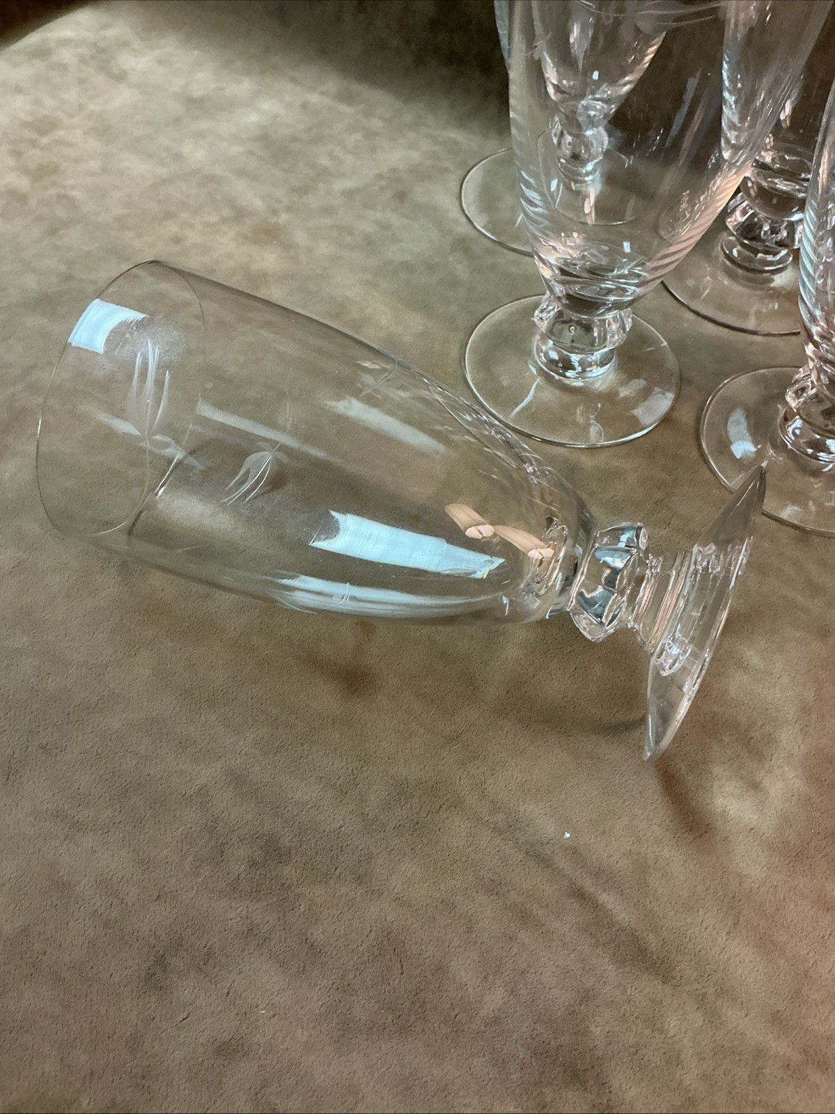 Vintage 1950s Heisey Clear glass rosebud cut iced Water Goblet Stem Lot Of 6