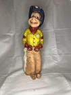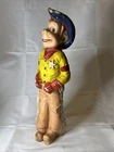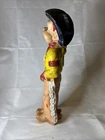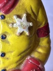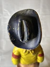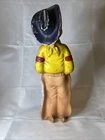 This is a well played with vintage 1950s Sheriff Howdy Doody 13" rubber squeaky toy, designed in the character style. This collectible toy features the popular character Howdy Doody from the 1950s era and is made of rubber with a squeaky function. With its vintage appeal and nod to the classic television character, this toy would be a nostalgic addition to any collection of vintage and antique toys from that time period.
