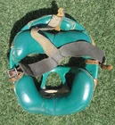 Vintage 1950's-60's Brunswick MacGregor catcher's catcher's mask. A nice green composite resin mask. This mask is nearly identical to those used in the Major Leagues during the early 1960's. This mask measures 10 1/2 x 8 1/2 inches. Has thick vinyl covered pads. The chin pad has fairly light cracking (see photo). The headstrap, buckles and leather connector tabs are excellent and t he straps and buckles are intact and in working order. No writing. Please inspect photos and contact seller with any questions. Shipping is $11.95. Please check our other auctions for our vintage sports items listed.