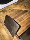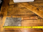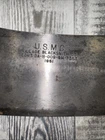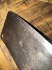 What do I know about meat cleavers? Not much. Here are the details as I see them: This cleaver has the date 1951 engraved on the blade. The blade is engraved with: (as you will see in the pictures) U.S.M.C., Village blacksmith Company CONT.DA-N-009-OM-7353 1951 The overerall length is approximately 14 inches and is 4 inches at the wide end. The wooden handle is sturdy and the metal blade tang extends all the way through the handle fastened by three rivets. There is NO crack on the handle. On one side there are 2 rivets missing. The handle is secure. There is no off odor and the handle feels clean and dry--not greasy. If I have missed any important facts, please feel free to ask!