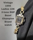 This vintage ladies watch from 1956 features a 10K yellow gold two-tone bezel by Champion, signed and original. The armlet style watch is elegantly designed with a mix of beauty and artistry, perfect for occasions such as engagements, weddings, anniversaries, and birthdays. This timeless piece combines vintage charm with a touch of luxury, making it a special gift for Mother's Day, Christmas, graduations, and other important milestones.