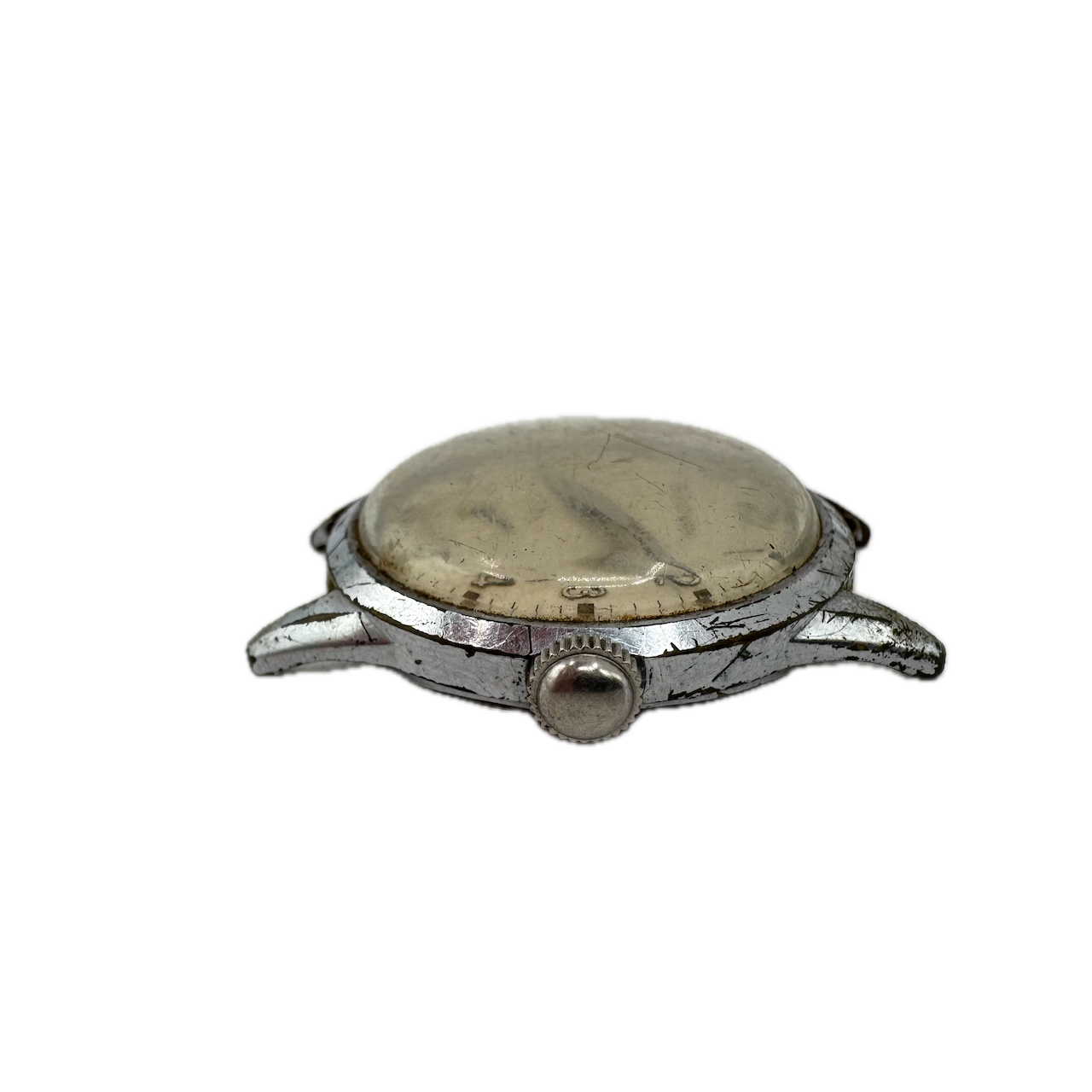 Vintage 1957 Bulova Men's Mechanical Wristwatch 11 AC Swiss Steel & Chrome Product Description Item: Wristwatch Brand: Bulova Movement: Mechanical Case Material: Steel & Chrome Production Year: 1957 Country: Swiss Gender: Men's Caliber: 11 AC Size: 32mm About the brand: One of America’s foremost manufacturers, Bulova was founded in the late 19th century by Joseph Bulova in Queens, NY. The brand quickly established itself as a maker of high quality watches, and became fully ingrained in American culture - even producing the first ever television commercial. Known for models like their Devil Diver, Sea King, and the later Accutron models, Bulova is something of the un-sung hero of American watchmaking, and a treasure trove for a vintage collector. Product Measurements Diameter: 32mm Lug Width: 16mm Tip to Tip of Lugs: 40mm Thickness: 10mm Product Condition Poor, overall condition for its age. Not running, the balance complete is good though. There are scratches on the case. There are scratches on the crystal. The dial has scratches and discoloration. There is discoloration on the dial.