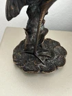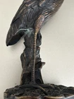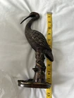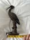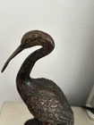 This vintage brass sculpture is a stunning piece that captures the essence of a heron crane egret in flight. The intricate details and ornate design make it a beautiful addition to any collection. Crafted in the 1960s, this handmade figurine is a unique piece that showcases the artist's talent. Made from high-quality brass, this sculpture is durable and will stand the test of time. The heron crane egret is portrayed with one leg extended, capturing the grace and elegance of this magnificent bird. Whether you are a collector or simply appreciate the beauty of birds, this sculpture is a must-have.