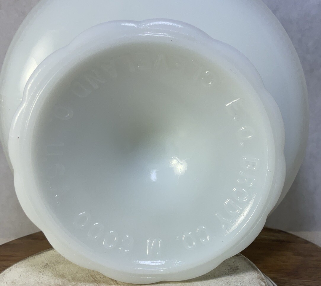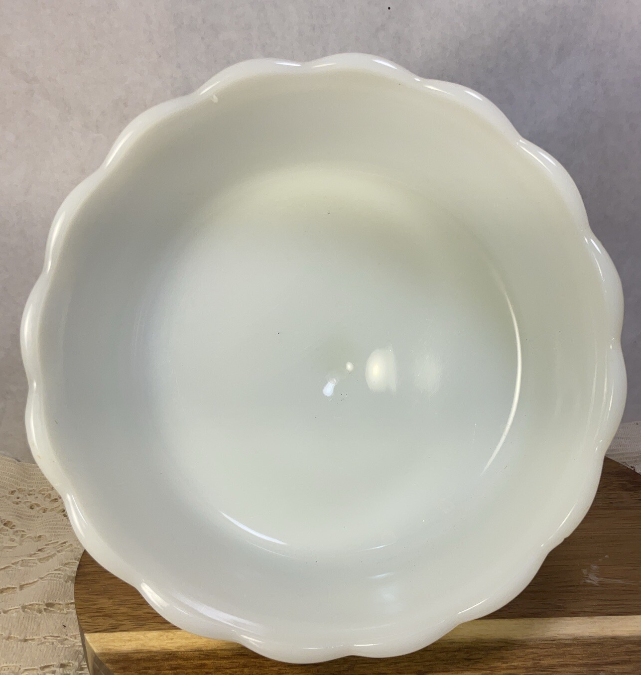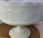 STUNNING EO BRODY MILK GLASS COMPOTE/PEDESTAL BOWL. SCALLOPED EDGE. FROM 1960’S. MADE IN CLEVELAND, OHIO. MODEL M6000. GREAT ADDITION TO YOUR FARMHOUSE OR COTTAGE DECOR. APPROX 5 1/2 X 6 1/2. NO CHIPS OR CRACKS. WE WILL CONSIDER ALL REASONABLE OFFERS. CHECK OUT OUR OTHER LISTINGS FOR MORE VINTAGE TREASURES. THANKS FOR LOOKING AND GIVE US A FOLLOW.