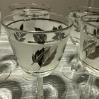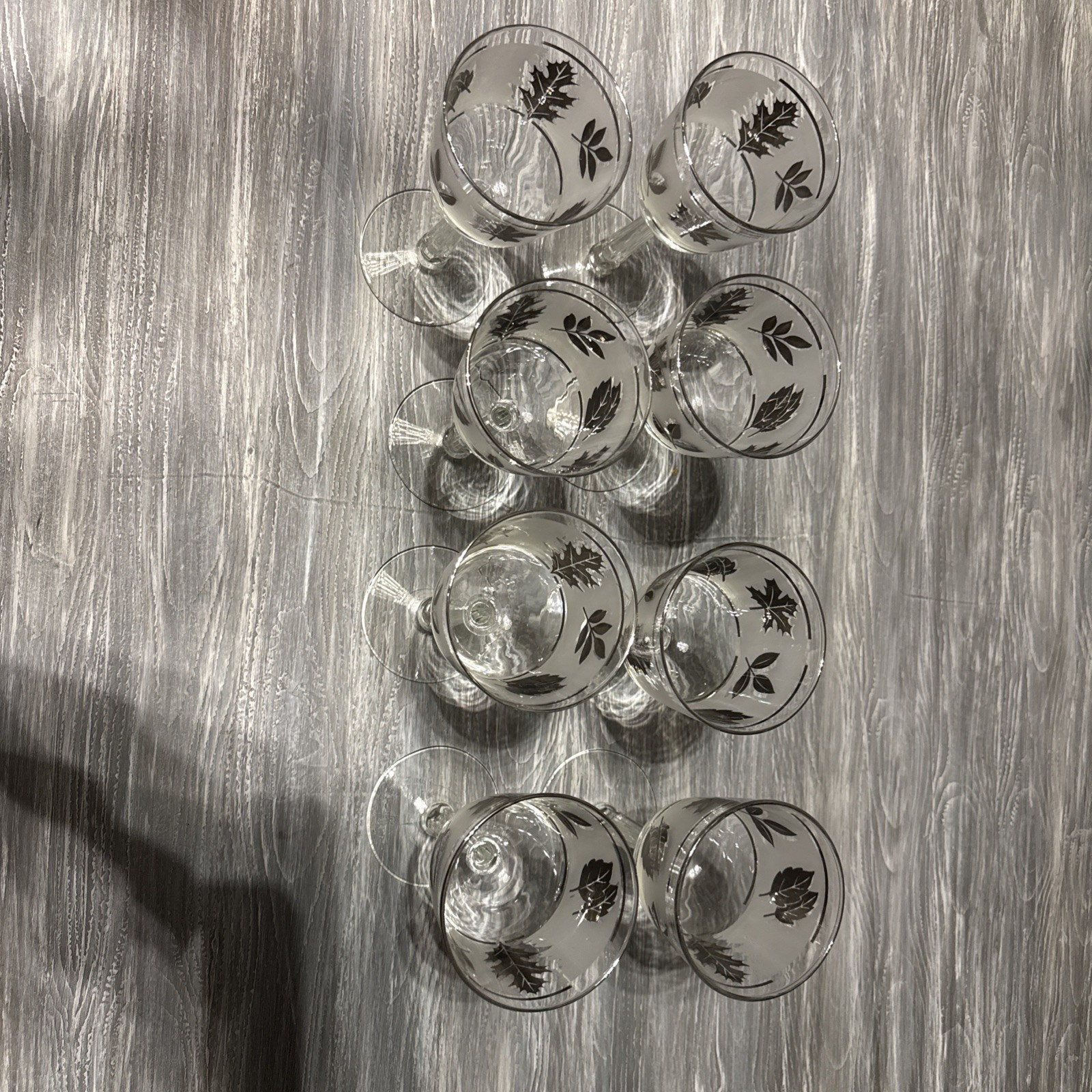The Vintage 1960s Libbey Silver Foliage Frosted Wine Glasses are a stylish and elegant addition to any home bar or dining collection. This eight-piece set of 8oz wine glasses features a sleek silver color with a frosted design, perfect for all occasions. Made of high-quality glass by the trusted brand Libbey, these wine glasses are a classic and timeless piece that will add a touch of retro charm to your gatherings. Enjoy your favorite vinos in these beautiful and vintage-inspired glasses.