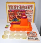 A Vintage 1960s Mattel Chitty Chitty Bang Bang Toot Sweet Set in Original Box. The set appears complete, including 8 molds, device, tray, and instructions. Also included are 3 original Tootsie Roll candies from the 1960s (they are sticky; they are not to be consumed). All contents are in nice undamaged condition (molds could use a cleaning); the tray has a couple of small cracks. Original box is complete; the back panel has some punctures. Please see photos for condition and ask questions if anything is unclear. Will combine shipping on multiple purchases. Add $16 for Priority shipping. Good luck!