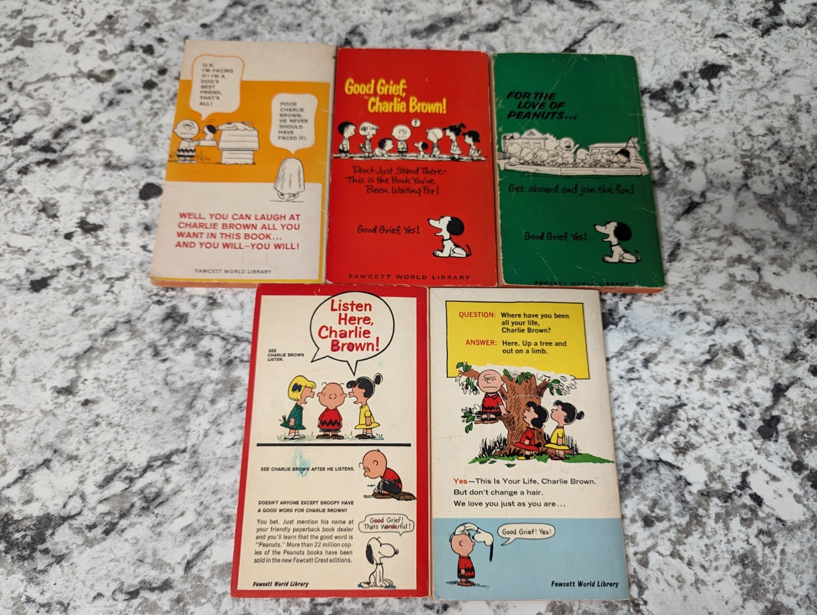 Vintage Lot Of 5 Peanuts Charlie Brown Snoopy Paperback Books 1960's. See condition of the books in the pictures, all the pages are clean no marks or writing.