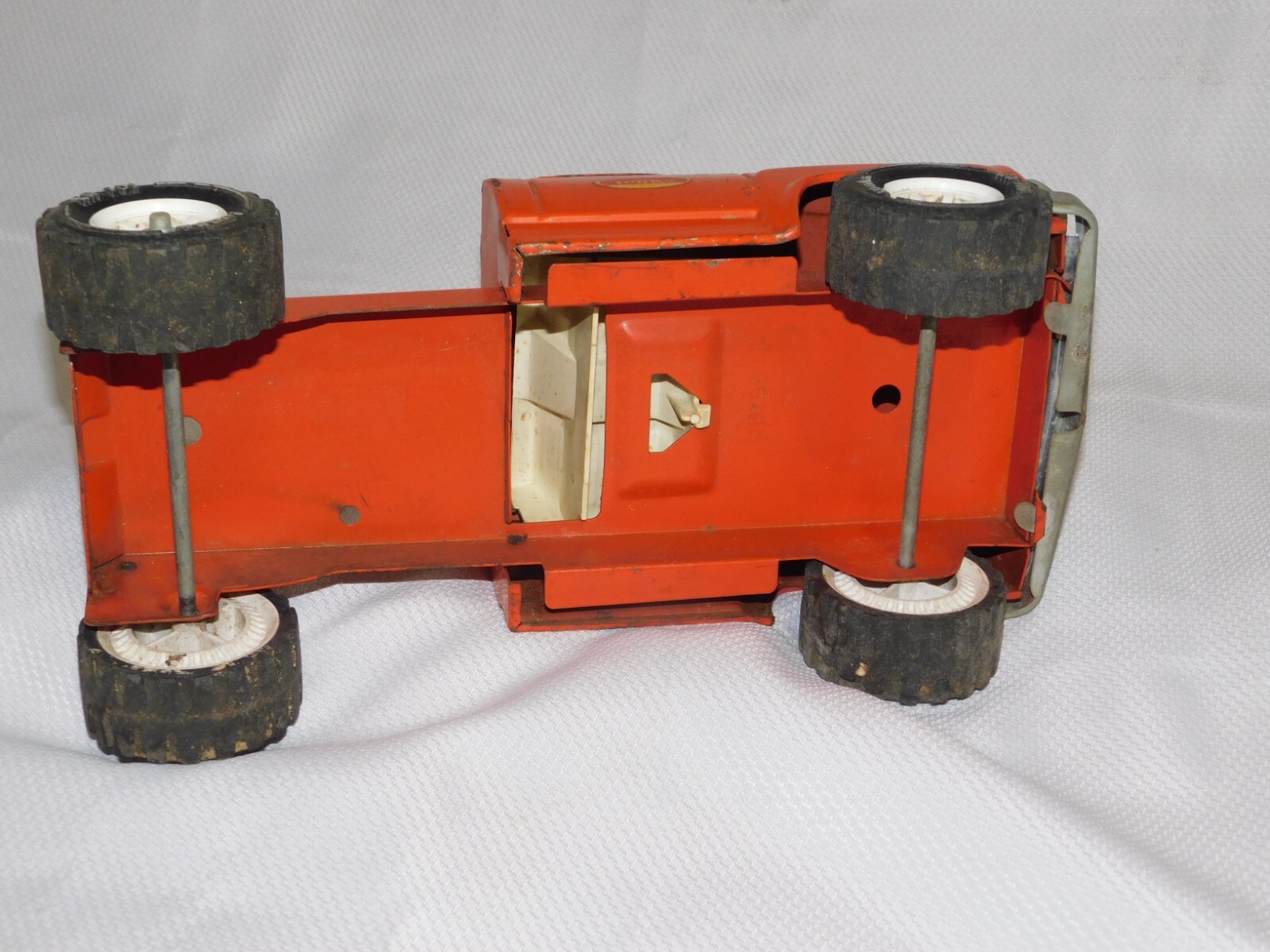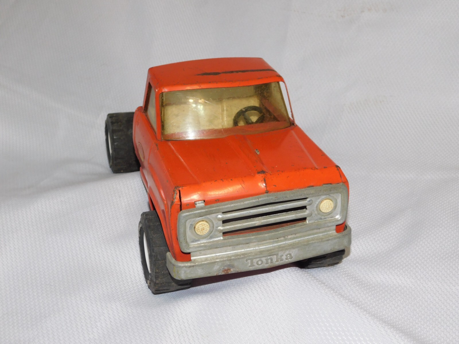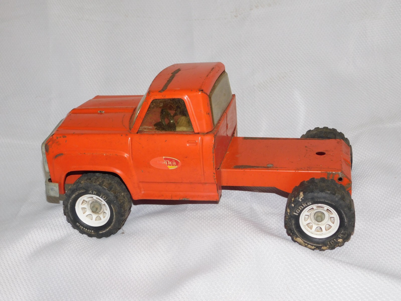 IN THIS AUCT ION I HAVE A Vintage 60's Tonka Pressed Steel ORANGE CAB Truck XR-101 12" LONG WHAT YOU SEE IS WHAT YOU GET. PLEASE CHECK PICS AS THE PICTURES ARE YOUR DESCRIPTION AS WELL. PLEASE CHECK OUT MY OTHER AUCTIONS FOR OTHER HARD TO FIND ITEMS HIGH BIDDER PAYS $14.99 SHIPPING. I DO COMBINE SHIPPING. ANY ITEMS BOUGHT OVER THE WEEKEND GETS SHIPPED BETWEEN MONDAY-TUESDAY!