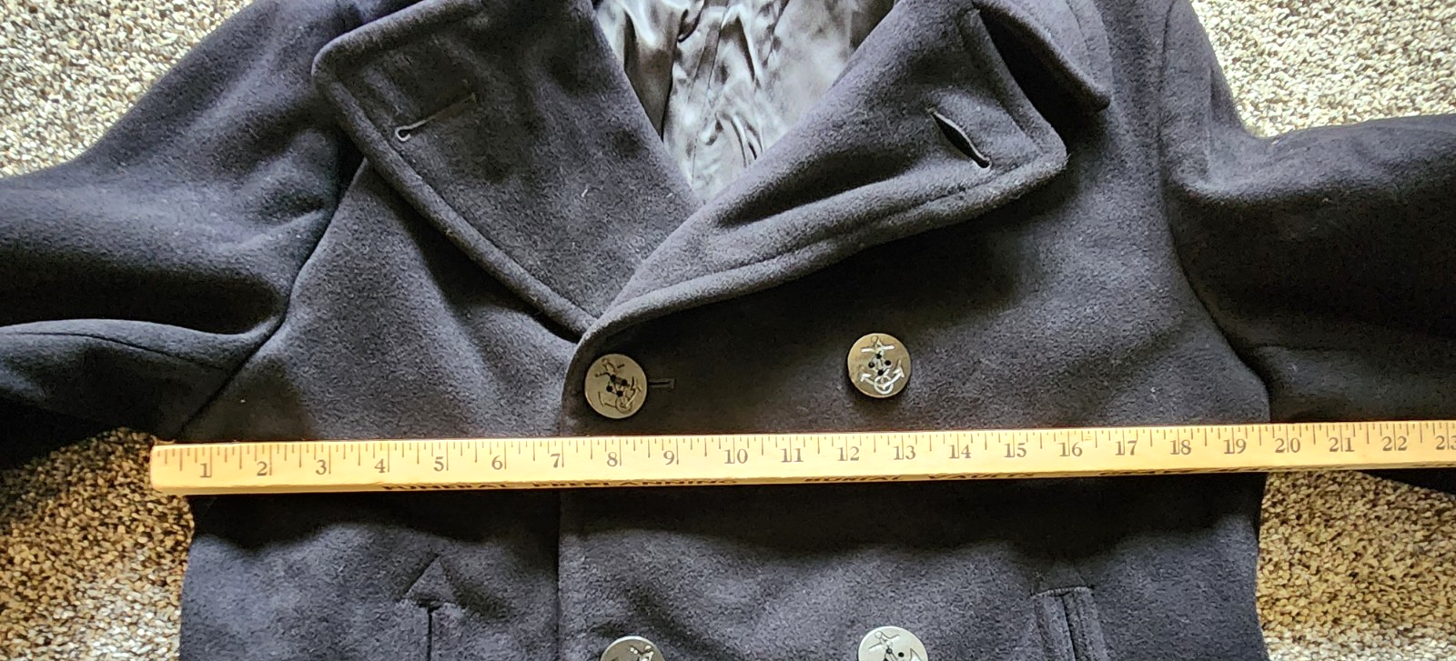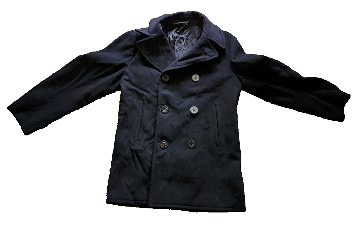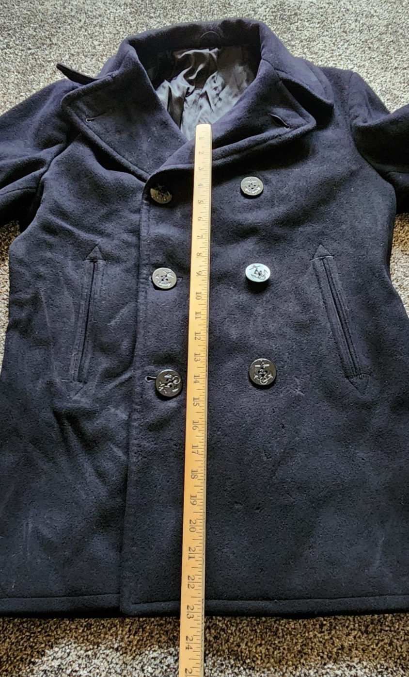Vtg US Navy Issued Peacoat 38R Navy Wool 1960s Vietnam Kersey Double-Breasted Has a few small snags below bottom button on left side. Had a patch removed from the left sleeve