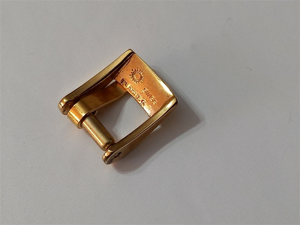 Rare 1960-70's 7mm (inside) yellow plated Swiss Made Ladies buckle, unbranded. It's a 7mm (inside) wide Ladies buckle size. This buckle is suitable for your Omega, Longines, Zenith, Movado ...... The buckle is in new old stock condition and may showing signs of age and storage. The sale is for 1 (one) buckle only. - Delivery Time: 4 - 10 days (via DHL Express) We combine shipping. Terms & Conditions We are dealing with pre-owned/ used/ vintage timepieces. Our items are 100% authentic. All photos are taken by us. Buyers will receive the same item that is shown in the photos. We provide a full description and many photos of the item and we expect you to contact us for extra details. Shipping We ship international expedited shipping via DHL with tracking. Phone number is required by DHL for shipping. We ship from Lebanon. We combine shipping. We are not affiliated in any way with any of the presented brands. Buyer will have to pay any custom fees for releasing the item in their own country, this will effect delivery times. Check the custom fees in your country before you buy.
