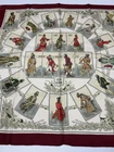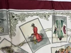 Authentic Hermes Scarf Titled: "La Tenue de Venerie" Artist: C.J.Hallo Issued in 1964 Age: 61 years 100% SILK Dark Cherry Red Border x Multicolor Good vintage condition with a few stains and marks as displayed in the last few pictures