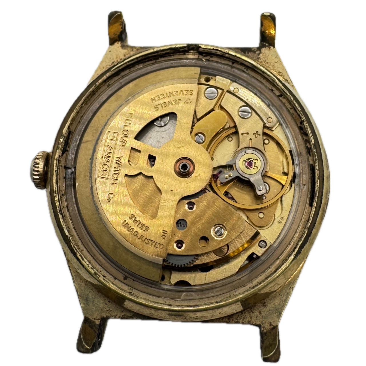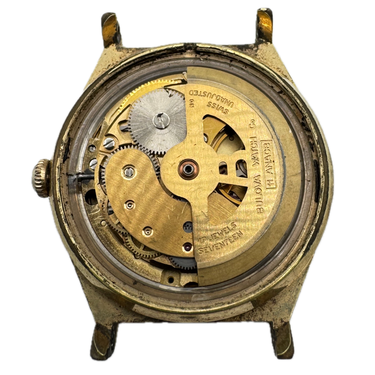 Vintage 1969 Bulova Linen Day Date Sea King Men's Automatic Wristwatch 11 ANACB Product Description Item: Wristwatch Brand: Bulova Model: Linen Day Date Sea King Reference: 3000 Movement: Automatic Case Material: 10k RGP Production Year: 1969 Country: Swiss Gender: Men's Caliber: 11 ANACB Size: 33mm Product Measurements Diameter: 33mm Width: FALSEmm Lug Width: 17mm Lug to Lug: 39.5mm Thickness: 10.5 mm Product Condition Overall Condition: Fair, overall condition for its age. Functions: Not running but the balance complete is in good condition. Case: There is plating wear through and scratches on the case. Crystal: The crystal is cracked. Dial: The dial has discoloration. Crown: The crown is worn. About the brand: One of America’s foremost manufacturers, Bulova was founded in the late 19th century by Joseph Bulova in Queens, NY. The brand quickly established itself as a maker of high quality watches, and became fully ingrained in American culture - even producing the first ever television commercial. Known for models like their Devil Diver, Sea King, and the later Accutron models, Bulova is something of the un-sung hero of American watchmaking, and a treasure trove for a vintage collector.