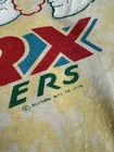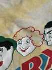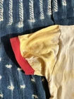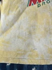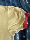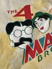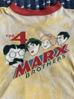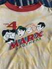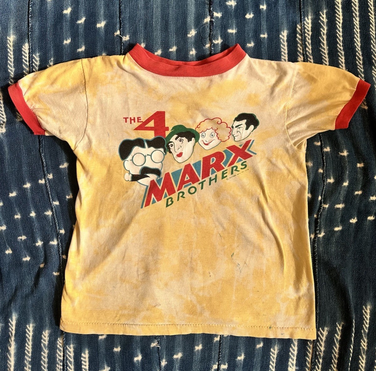 Fun, and cool, vintage 1970’s Marx Brothers, red, ringer t-shirt. Featuring, Groucho, Chico, Harpo, and Gummo. The yellow, white, and the subtle, blue spots, on the tie-dye, gives the shirt, stylish, details. It’s stamped 1974, near the front, right, below the ‘Brothers’ graphic. Please note. This is a youth, large, equivalent to an adult, women’s small, or mens extra small. The shirt still contains, its original, Allison brand tag, marked large. Offering free USPS Ground advantage shipping! The shirt’s in used condition with some flaws. From pit to pit, it measures 16” 1/4 wide. The shirt length is 18” inches long. The sleeves, measure 5” 1/4 inches long. The biggest flaw, is a dark age, stains on the middle, right, front and on the inside, of the shirt. As shown in the photos. Also, please note, there’s some balling on the shirt, mostly near the arm pits and a few other places on the shirt. There’s also a small, dot sized, dark stain, on the front, right of the shirt, near the collar. The rubber, graphics, have some wear, and loss, mainly, on some of the brothers faces. Also, some of the rubber 1974 graphics, is missing some rubber as well. There’s some minor, wrinkles due to storage. Selling as is/as found, because of the noted flaws and condition. A must have for classic, 1930s Hollywood/comedy, as well as 1970s fashion and style enthusiasts. Thanks for your interest!