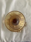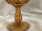Dive into the vintage charm of the 1970s with this stunning Fenton Art Glass compote standing 6” tall and 6” wide with the iconic Fenton oval on the bottom. Boasting a glorious amber hue, this hobnail pedestal piece features a ruffled edge that effortlessly captures the era's love for texture and form. Crafted in the United States, it's a quintessential example of pressed pattern glass and is often affectionately termed "Colonial Amber." Elevate your collection with this timeless piece of Americana.