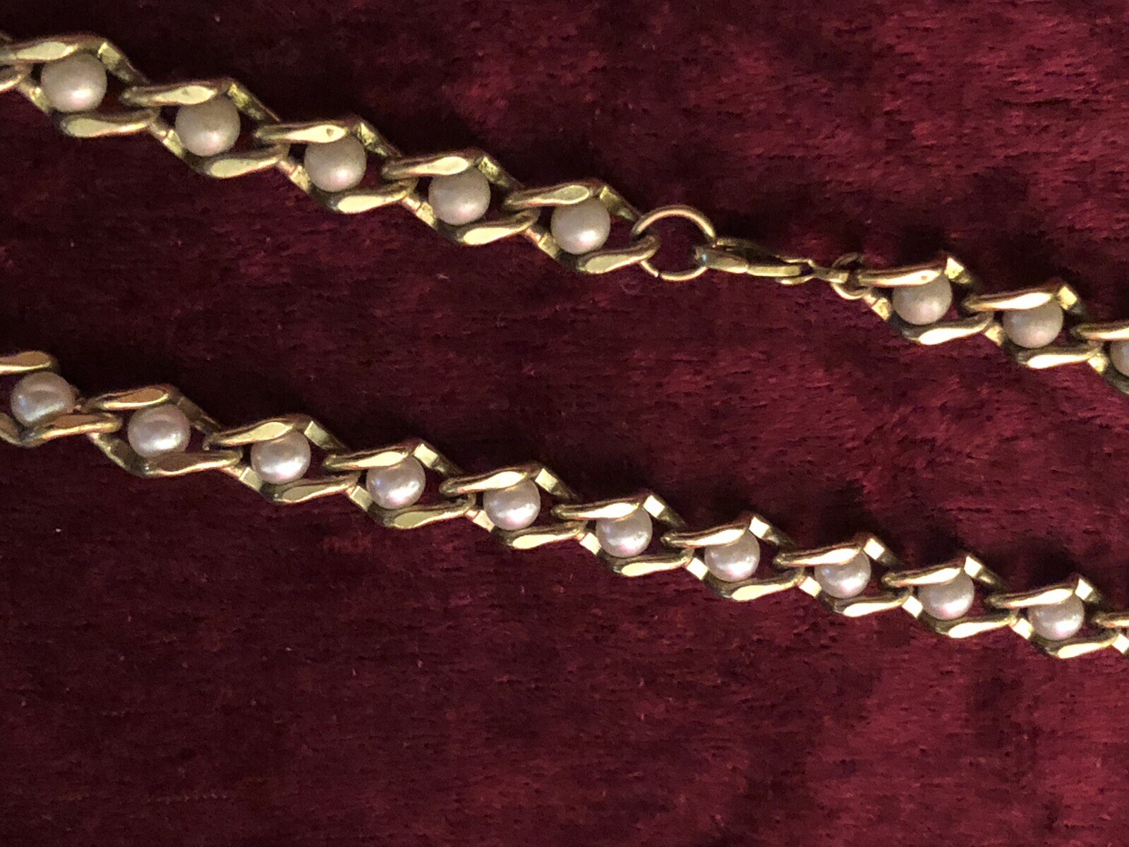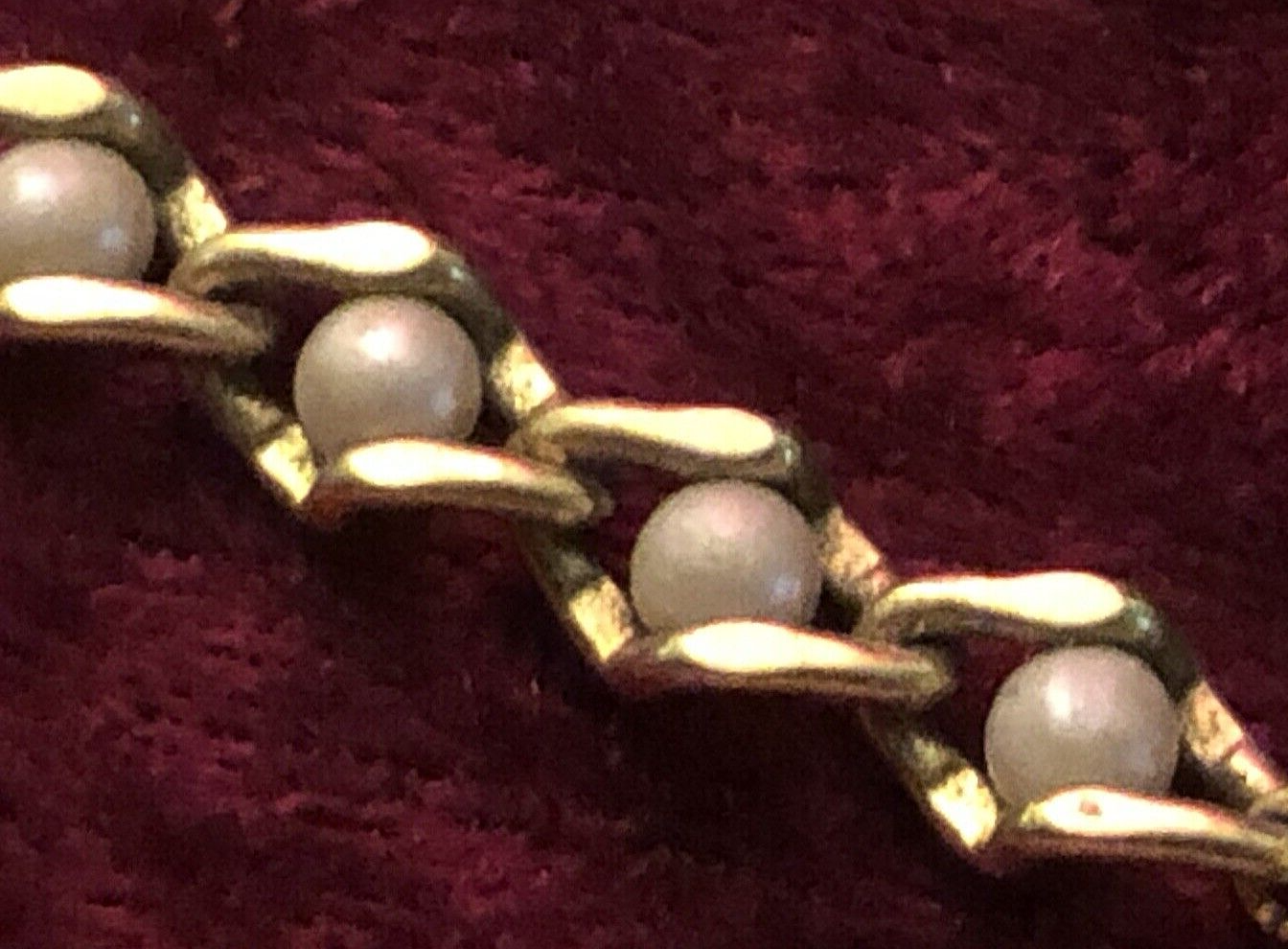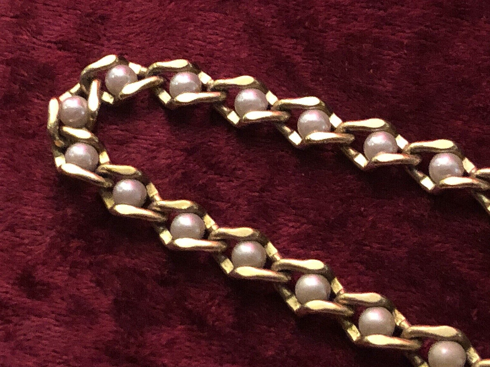 THIS LISTING IS FOR A LOVELY VINTAGE GOLD TONE NECKLACE WITH PEARLS INSET IN EACH LINK. IT COMES FROM A LARGE COLLECTION OF VINTAGE COSTUME JEWELLERY FROM THE 1970's. IT IS IN VERY NICE OVERALL CONDITION. ELECTRONICALLY CLEANED AND READSY TO WEAR.