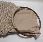- Vintage 1970s Handmade Macrame Shoulder Bag features a unique design with large wood look circle handles - open bag with no closure and no pockets inside. Fabric lining ** Condition: - this piece is in excellent condition with no rips tears or stains noted. See photos for condition details. ** Measurements: - measures 10.5 in wide by 9 in high with a 8 in handle drop