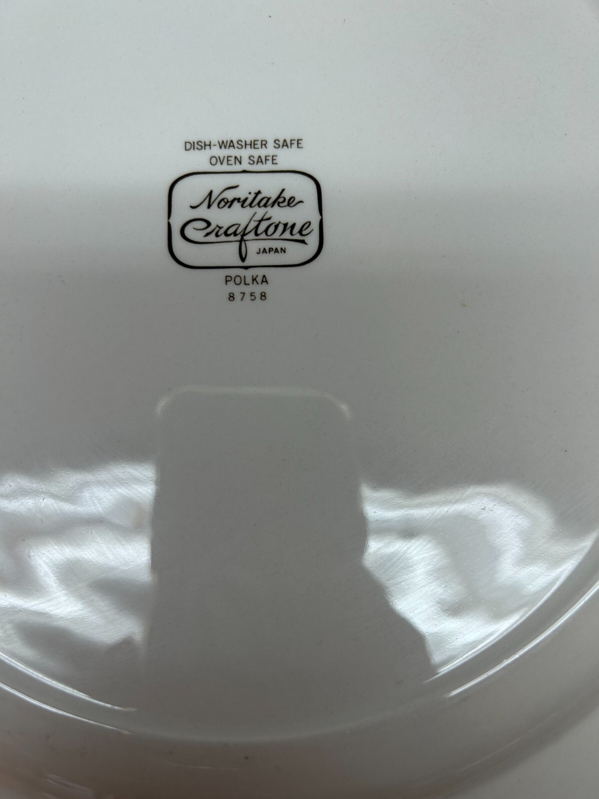 Vintage 1970s Noritake Craftone Polka #8758 Porcelain Big Salad Serving Plate Made in Japan.Never used-no scratches,no cracks,no chips.This line has been discontinued in 1978.Very hard to find WE OFFER COMBINED SHIPPING AND MULTI-ITEM PURCHASE DISCOUNTS.IF YOU HAVE ANY QUESTIONS, PLEASE LET US KNOW