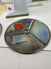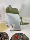 Vintage 1970s Popeil's Kitchen Magician Food Cutter Slicer Shredder. Includes 2 blades, base and handle. Pre-owned and shows some wear, please see photos for condition.