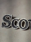 The Vintage 1970s SCOUT Emblem 396610-C1 is a black and chrome emblem featuring the iconic Scout logo, suitable for placement on the left or right side of a car or SUV. This emblem, manufactured by International, is a nostalgic piece representing the vintage era of the 1970s. Perfect for collectors or those looking to add a unique touch to their vehicle, this emblem is a classic addition to any exterior.