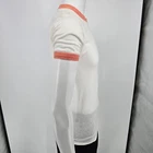 ๐น Item Details: Brand: Unknown (tag illegible) Material: Unknown (likely cotton-poly blend) Color: White with Heathered Orange Ringers Decade of Manufacture: 1970s (most likely date range is late 1970s but early 1980s is also a possibility) Country of Manufacture: Unknown (but almost certainly USA) Notable Features: Ring collar and cuffs, single stitch hem ๐น Condition Notes: Good used vintage condition. Tag illegible. Multiple small stains on back of shirt in middle. Deep vertical fold lines in the middle of both the front and the back of the shirt. Light to moderate fabric wear throughout. See photos for details. ๐น Size Notes: Vintage Tag Size: Unknown Modern Measured Size: Extra Small (32.5) ๐น Measurements (Approximate): Chest (pit to pit): 32.5 inches Collar to Hem: 25.5 inches ๐น Shipping & Returns: Ships worldwide from Lexington, KY. Ships within 3 business days of purchase. Returns accepted within 60 days for domestic orders and 30 days for international orders.