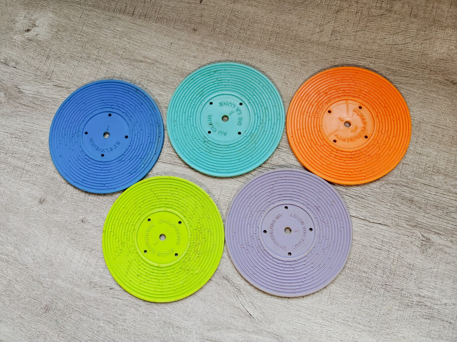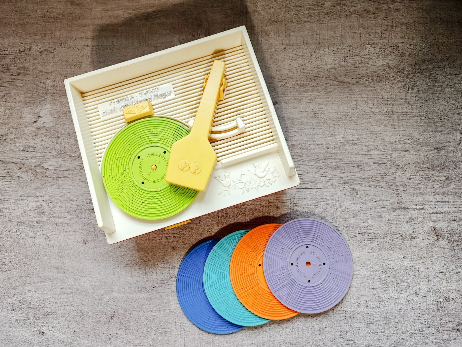 Vintage 1971 Fisher-Price Toy Record Player with 5 Records - Good Working Condition This vintage 1971 Fisher-Price toy record player is a delightful blast from the past! Complete with 5 original records, it’s a perfect piece for collectors or anyone nostalgic for retro toys. Details: Brand: Fisher-Price Year: 1971 Condition: Good working condition with minor wear Includes: 5 original records: Hickory Dickory Dock Camptown Races Oh Where Has My Little Dog Gone Humpty Dumpty Au Claire De La Lune This classic toy record player is ready for play or display and still in great working order. A wonderful addition to any vintage toy or Fisher-Price collection. Carefully packed for safe shipping—bring home this nostalgic piece today!
