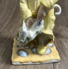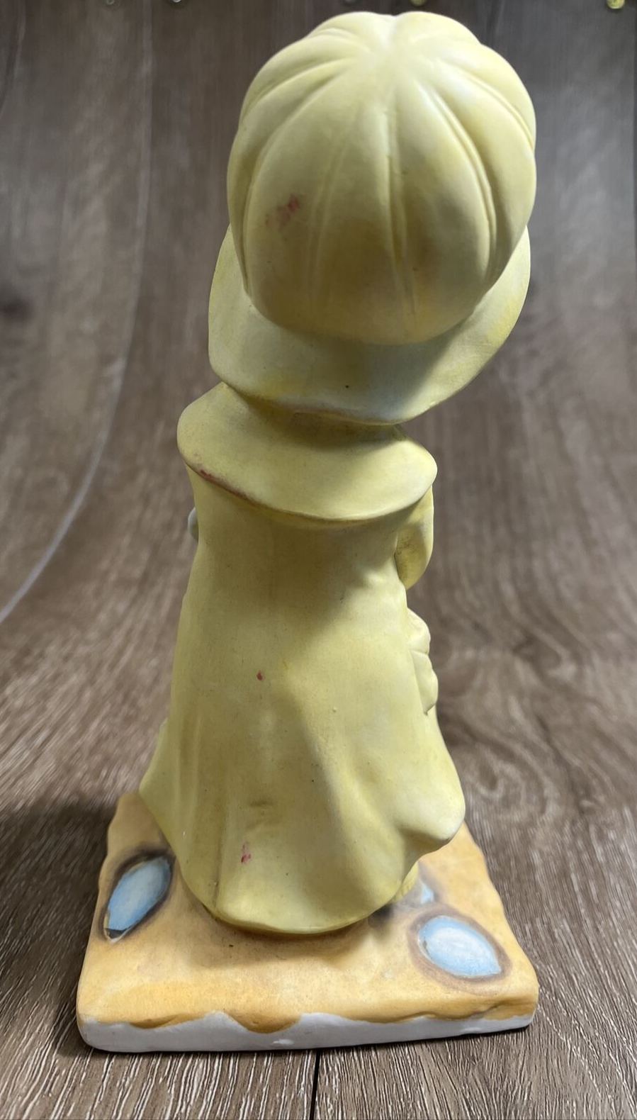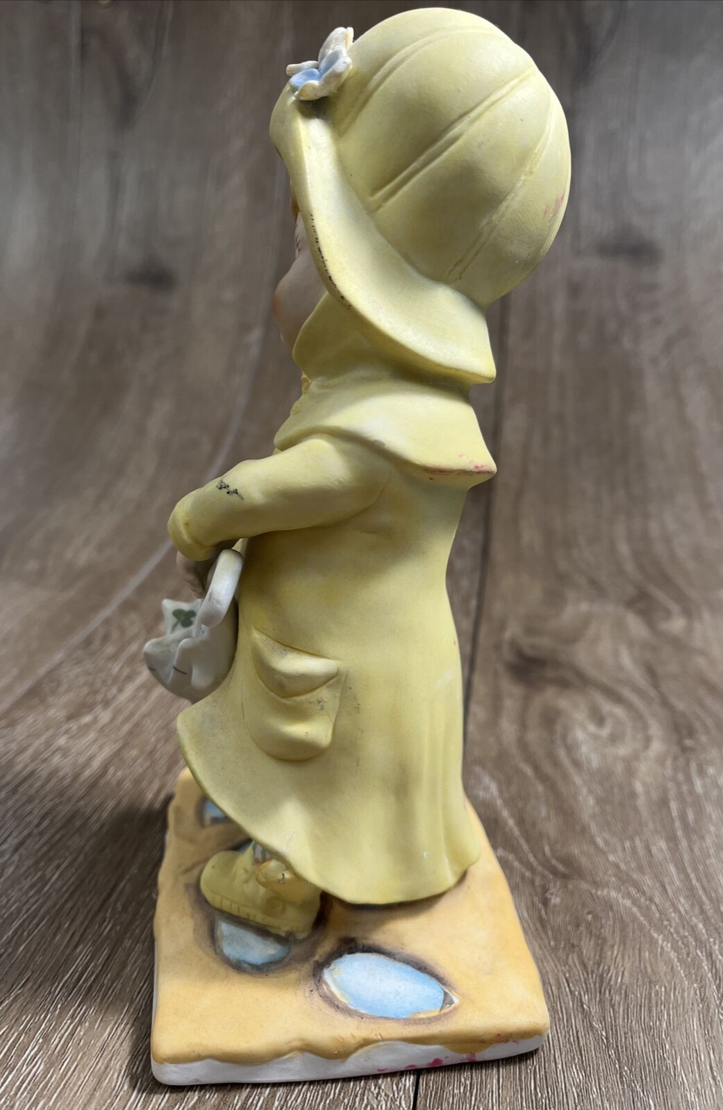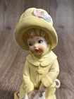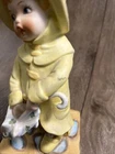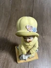 Vintage 1971 Boy In Yellow Rain Jacket And Umbrella Porcelain Sculpture. By our observations, this item is in acceptable condition. The pink flower on top of the hat is missing one of its petals, as shown in the pictures. The bent are has a black scuff mark on the elbow. The back of the statue has some red scuff marks on the hat, rim of the jacket, and on the middle of the back. There are some scuff marks on the bottom of the figurine as well. Some red stains are on the right side of the figurine stand towards the bottom. Please see pictures in the description for condition. Thank you for viewing this listing. We are a thrift shop located in Peachtree City, Georgia and all of our profits are returned to our community. We make every effort to test all electronic equipment that we receive and closely examine everything else which we will describe in detail if needed. If you have any questions, please message us directly and we would be more than happy to answer any of them.