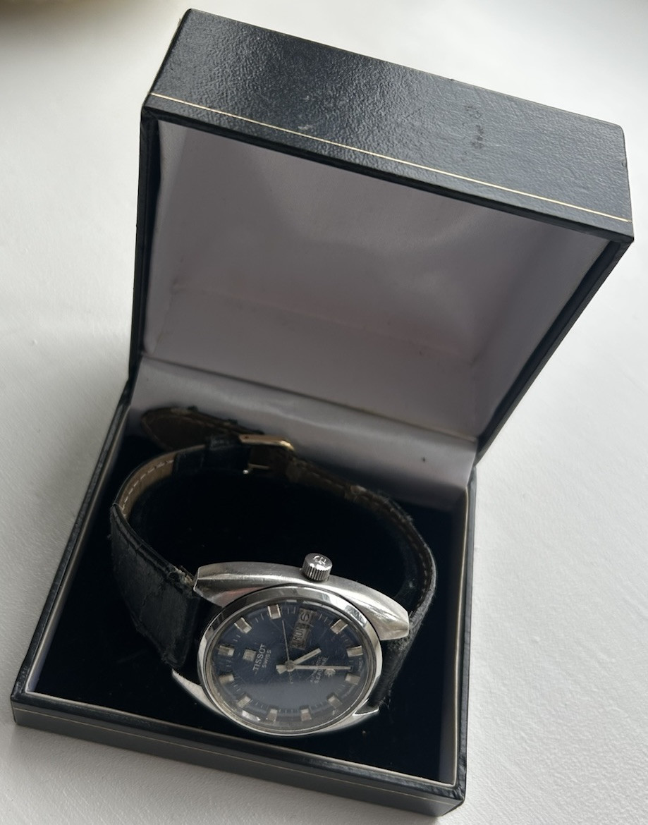 This vintage Tissot Seastar wristwatch is a timeless piece with a classic design. The watch features a day/date function and is powered by a mechanical (automatic) movement. It is a unisex watch and is suitable for both men and women. The model number is 46660-3x and it was produced in circa 1972. The watch is in great shape and is a wonderful addition to any collection. The brand Tissot is known for its high-quality watches and this one lives up to the reputation. The watch is perfect for everyday wear or for special occasions. Don't miss out on the opportunity to own this beautiful timepiece.