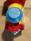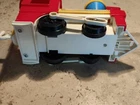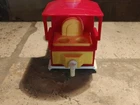 This vintage Fisher-Price Circus Locomotive train from 1973 is an 8-inch toy designed for preschool-aged children. The train features a circus theme. Made in the United States by Fisher-Price, this toy is part of the Little People line and is a collectible item for fans of vintage toys. The locomotive sound effect works, adding an interactive element to playtime. This train shows wear. It has scratches, scrapes and buffs to the plastic and fading to the decals. The sound does work. (HDX)
