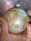This is a vintage Hallmark Christmas Ball ornament from 1974 featuring a Mary Hamilton design. The ornament is round in shape, large in size, and made of glass. It is multicolored and depicts a character named Marie. This collectible item is part of the Hallmark Keepsake collection and has a Christmas theme. It is an original piece from the United States, perfect for a multipurpose recipient during the holiday season. Vintage pieces, over 50 years old. Normal scuffs, age discoloration