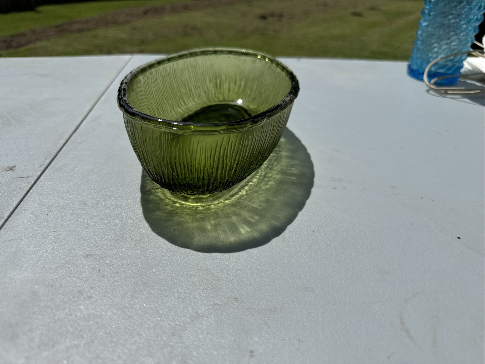 Absolutely love this piece! The rich green color and woodgrain texture give it such a unique mid-century vibe. Perfect for serving snacks or as a decorative accent. Great condition too!